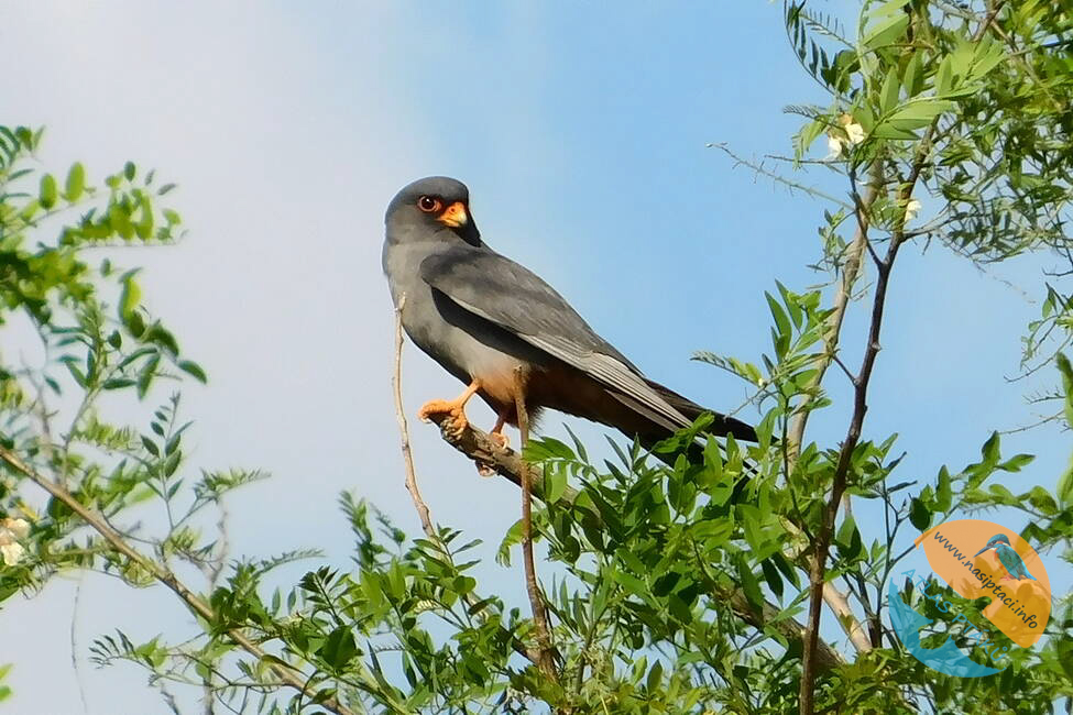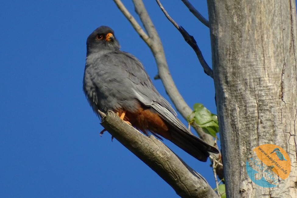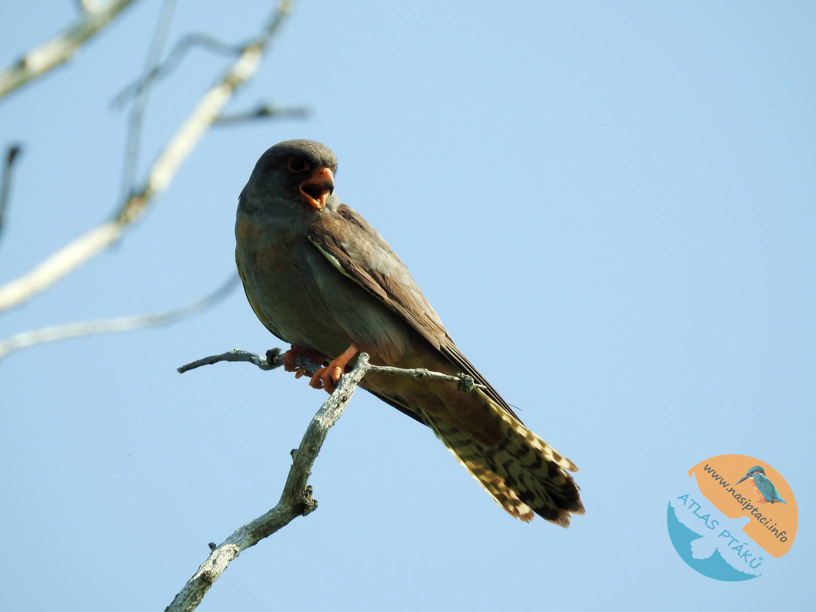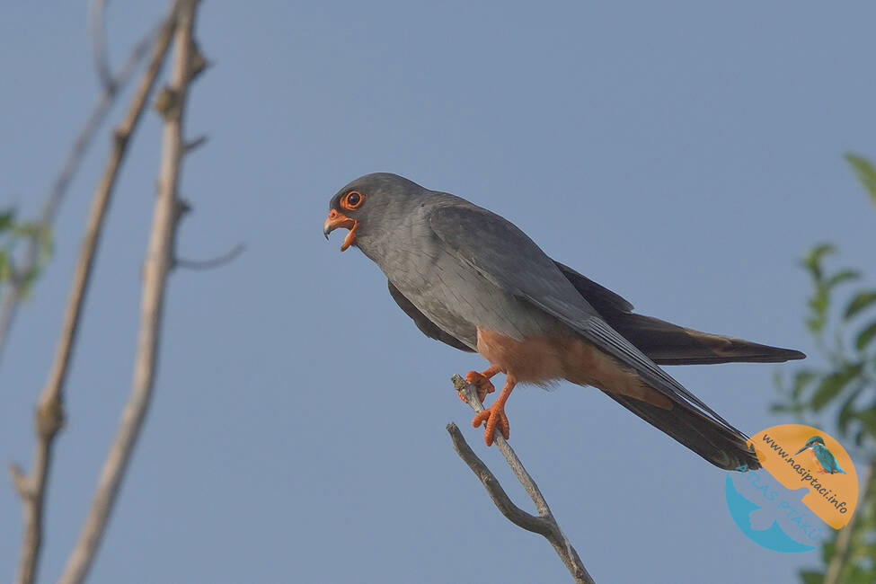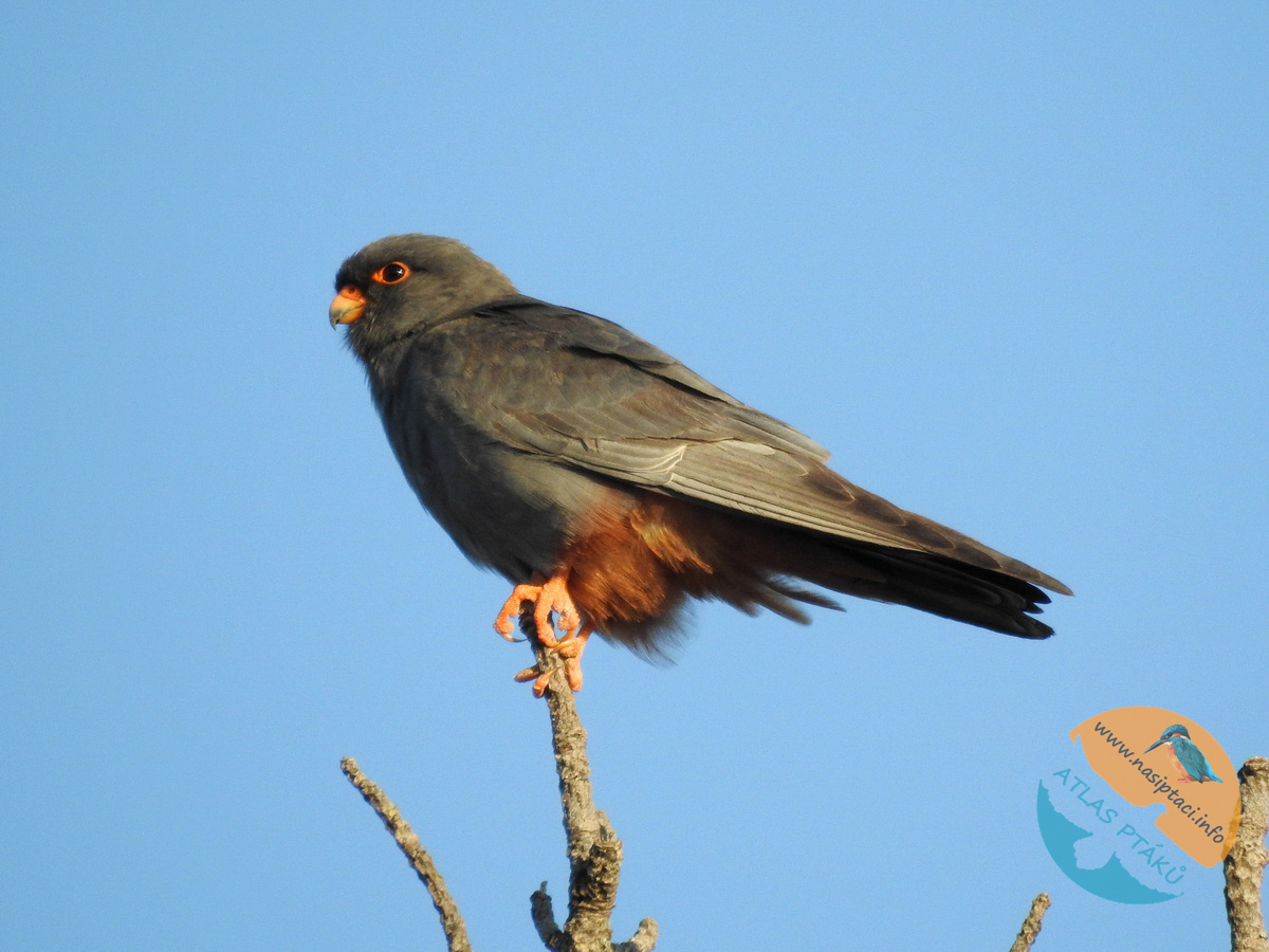 Hlasové projevy: Jde o poměrně hlučného dravce, zejména v okolí hnízda. Ozývá se pronikavým, rychlým a opakovaným „ki-ki-ki-ki“, podobným křiku poštolky obecné, ale obvykle ve vyšší tónině.