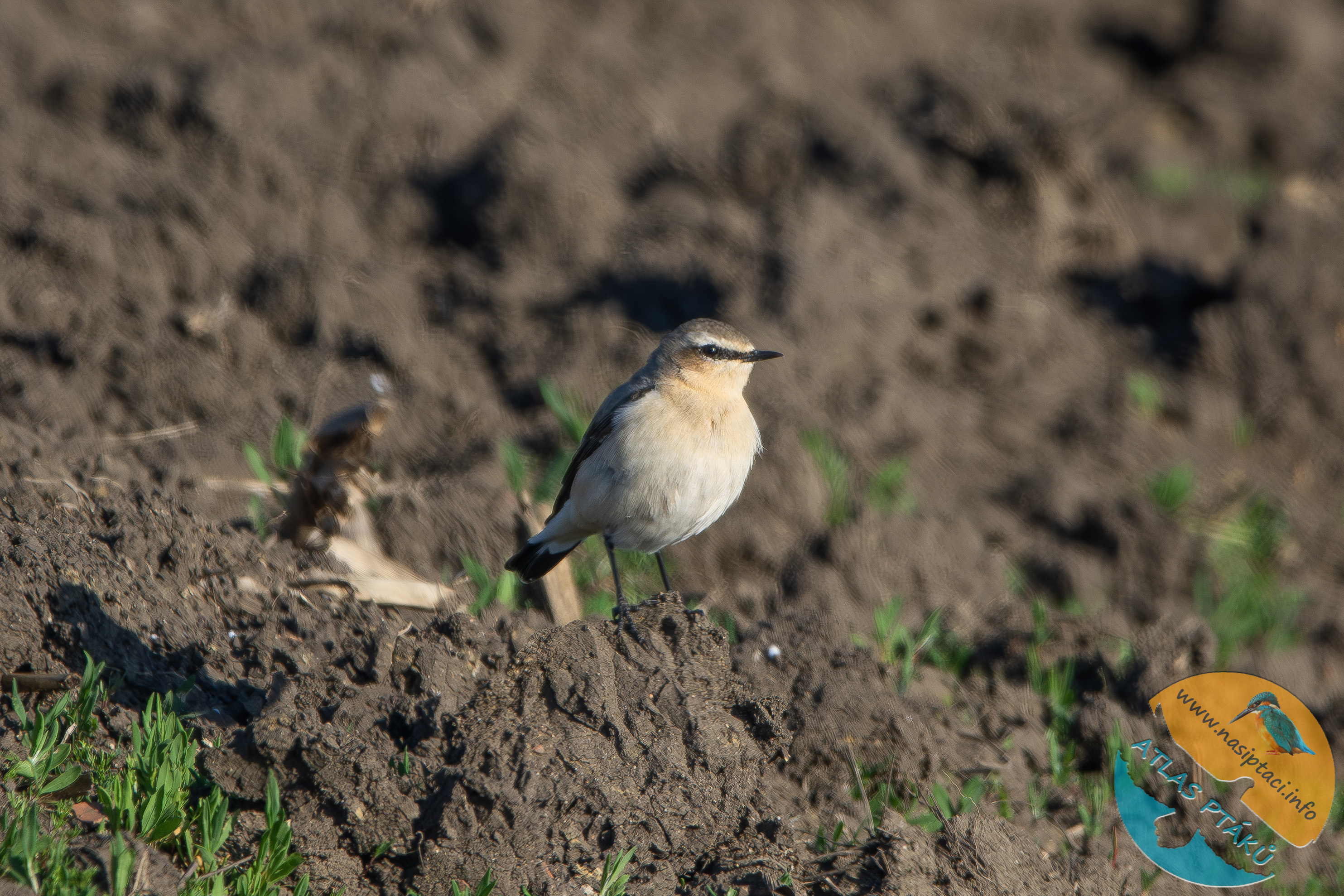 Bělořit šedý patřil k nejvýraznějším druhům dnešního pozorování. Tento štíhlý pták je typický pro otevřenou krajinu s nízkou vegetací. Větrolamy využívá spíše jako orientační body a místa k odpočinku, zatímco potravu hledá převážně na zemi.
