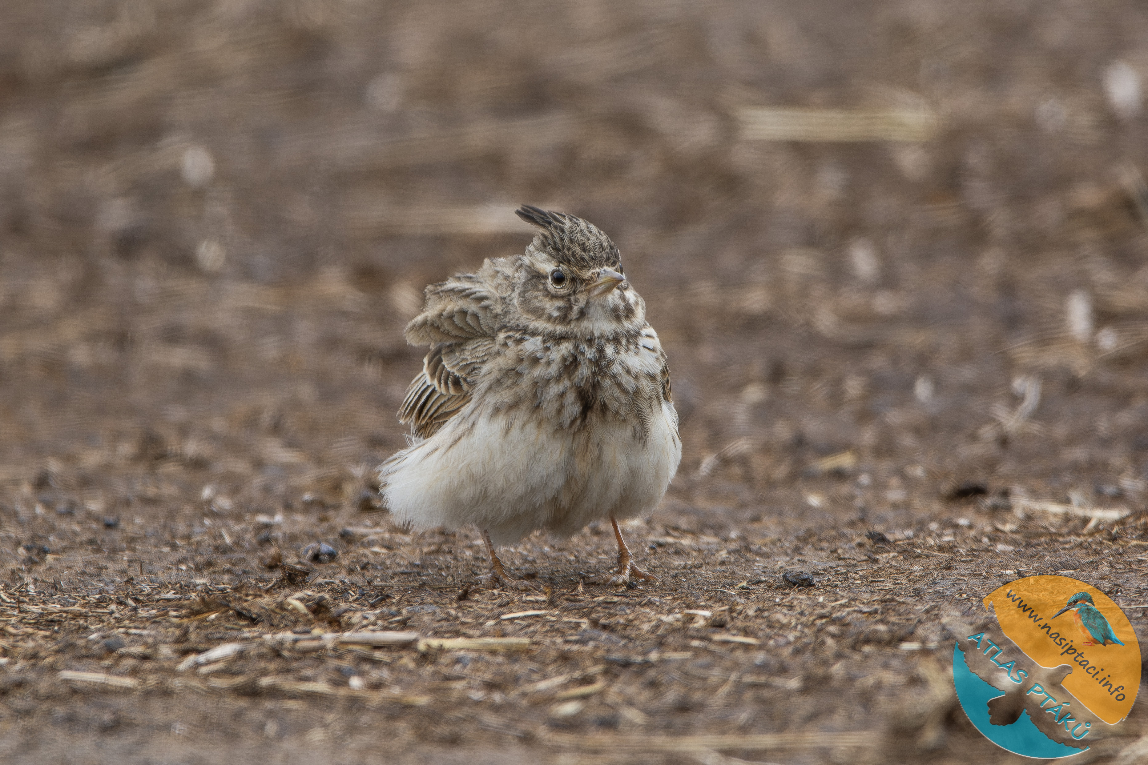 Chocholouš obecný byl jedním z nejzajímavějších nálezů dne. Tento druh se v posledních letech objevuje méně často, a proto je jeho pozorování vždy cenné. Typickým znakem je malá chocholka na hlavě a nenápadné, pískově zbarvené peří, které ho dokonale maskuje v otevřené krajině.